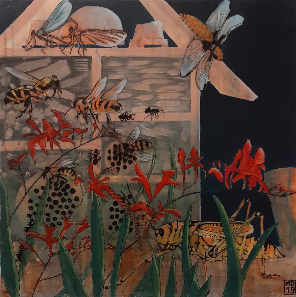 Les insectes sont énormes, les hommes tout petits (issus de la série « empreintes »), comme nous laisse supposer le futur écologique, pour nous qui disparaitrons comme nous sommes apparus, et les insectes que noun n’aurons pas exterminés qui nous survivront.
